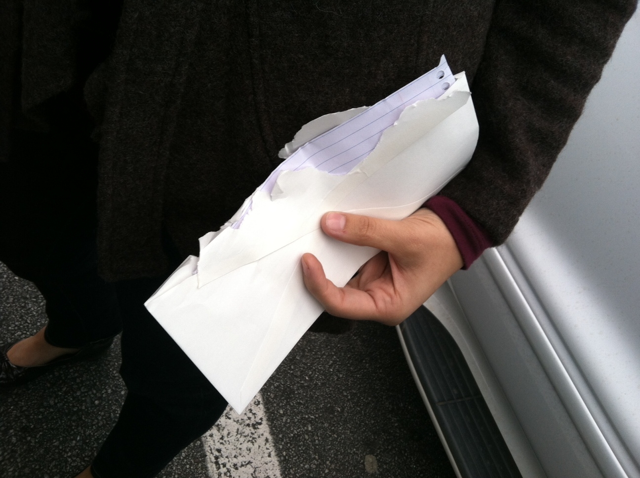 Attempt to open slowly. Proceed to shred the envelope (because that’s the only way to open an envelope– why so difficult?!).