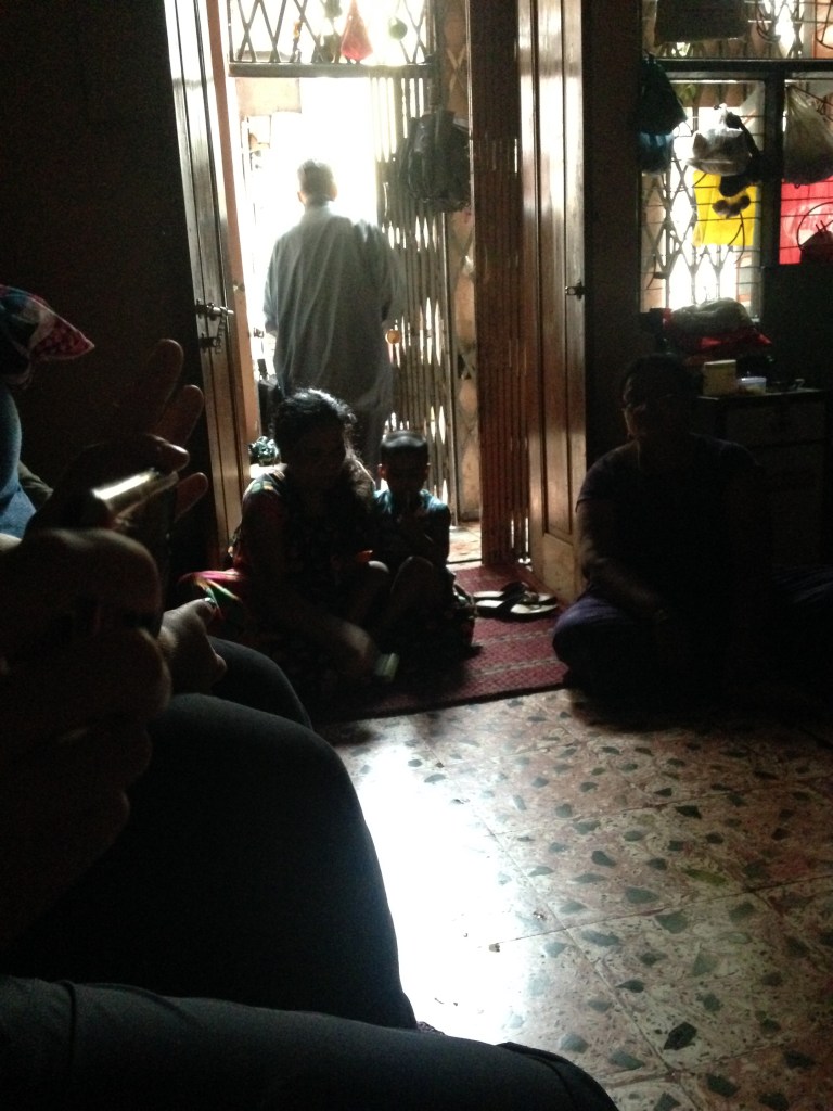 We walked around the corner into another brothel, this time going inside and sitting in the front room. The women gestured to us to sit on the seats and they sat on the floor on cardboard. They were so hospitable and even offered us tea. We gave the little boy there one of the beanie babies. Then we talked and Sela interpreted. They asked our names, what we do for a living, remarking on our features. One women sat on the other side and was a bit younger and looked very sad. There were about 6-7 women all together. Then eventually we sang again and went around and we all prayed. Then Sela prayed and also sang. She has such a beautiful voice. I was reminded again that I am here in another culture sitting accepted with prostitutes. Dirt never stopped Calvary blood. Later Sela told us that there were younger girls inside that we not allowed to come out. Many never leave their rooms and haven’t seen the light of day in years.