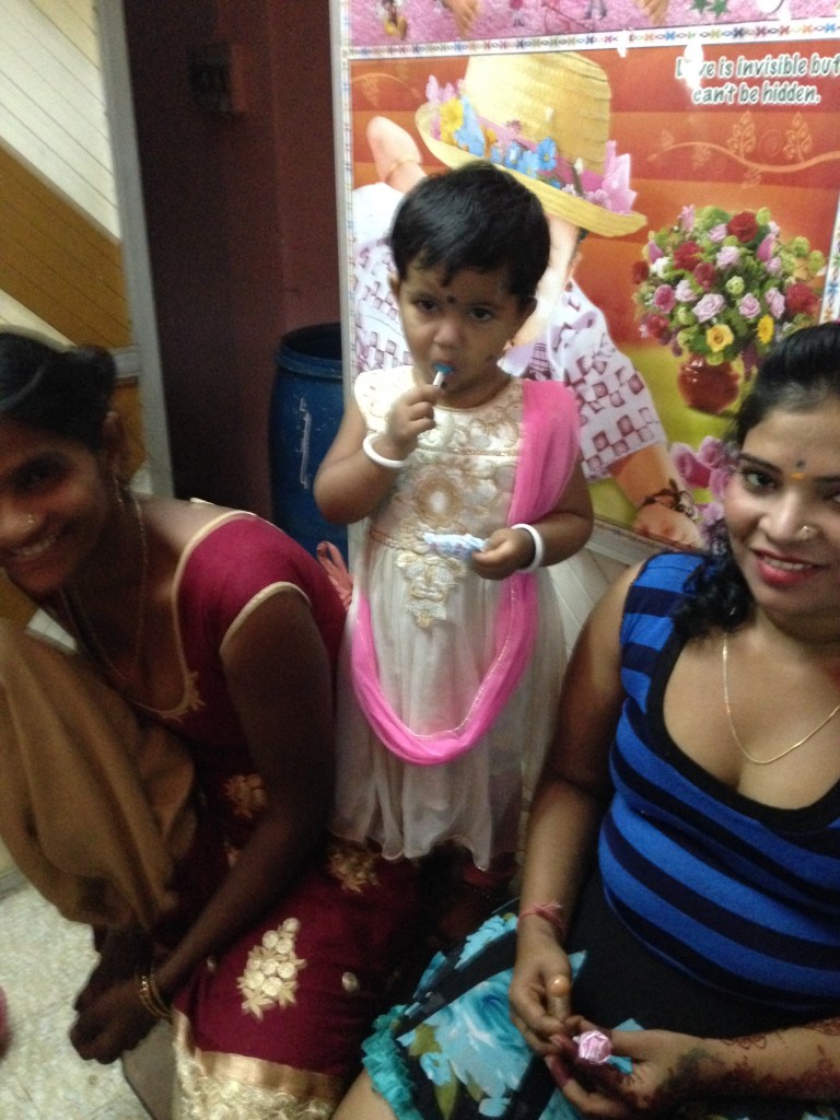 Sela led us through the large brothel district, armed with candy, hair accessories and beanie babies. The first group of ladies were on the side of the alley, three younger women that Nora later described as having such searing  pain in their eyes that it haunted her. We gave them hair clips and asked their names and told them how beautiful they were. When we came by later a man was talking to them, another customer.